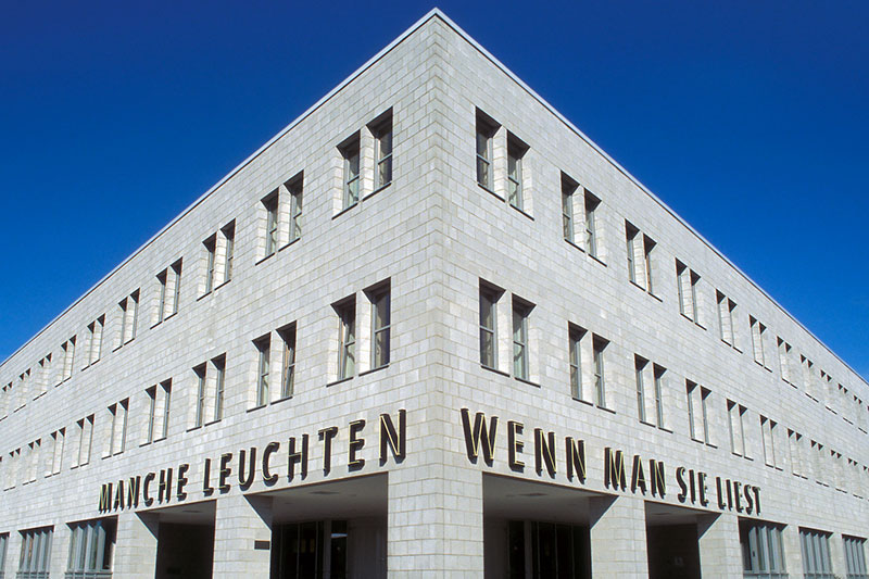 Anfang  Juni des Jahres 2005 war ich auf Besuch an der Universität in Kiel. Die Bibliothek der Universität ist wie auf dem Bild oben zu sehen ein sehr imposantes Gebäude und ich wollte sie von Innen sehen und erfahren. Ich laufe durch die Reihen mit vielen, vielen tausend Büchern. Eigentlich sind es sogar hunderttausende von Büchern. Irgendwann greife ich mir ein Buch aus dem Regal und schaue auf den Titel. Er lautet: „Was ist das Andere, auf das ihr Steine werft? Das Denken der Alterität in der Lyrik von Nelly Sachs” von Johanna Kuric. Ich stelle fest, daß ich hier also in der Abteilung der Germanisten bin. Nelly Sachs sagt mir nichts, aber der Titel klingt interessant. Also lese ich die Inhaltsangabe auf der Rückseite des Buches: